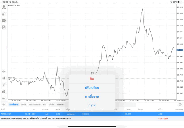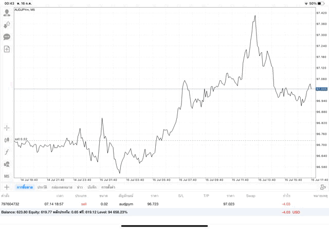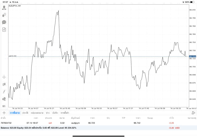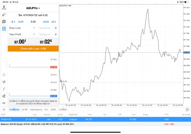 การเทรด forex AUDJPY 0.02 lot แอพเล่นหุ้น MT4 หรือ Meta Trader 4