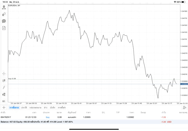 การเทรด forex EURUSD บนแอพเล่นหุ้น mt4 เริ่มแล้ว ติดลบก่อน เมื่อเวลาผ่านไป ราคาเปลี่ยนแปลง ผลการลงทุนอาจติดลบหรือได้บวกกำไร