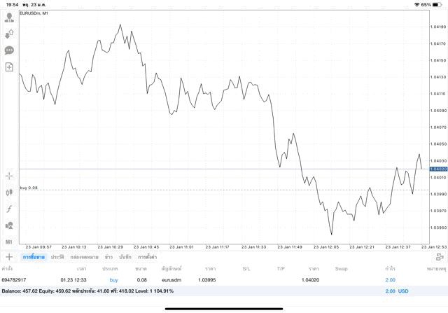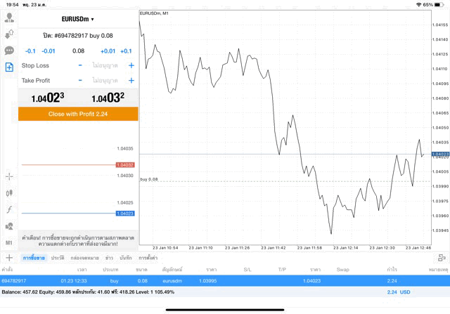 ได้กำไรแล้ว +2.00 $ เปิดการเทรดไว้ต่อ หรือ ปิดการเทรดครั้งนี้เลย ได้เงินกำไรเข้าบัญชีเทรด ถ้ายังไม่ปิด ราคาเปลี่ยนแปลง ผลการลงทุนยังเปลี่ยนแปลง เช่น กำไรลดลง หรือ อาจเพิ่มขึ้น หรือ กลับไปติดลบ