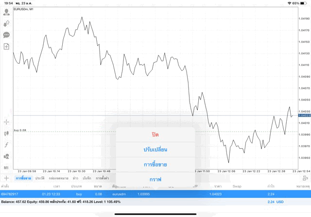 วิธีปิดสถานะการเทรด คลิ๊กค้างบนการเทรดที่นักลงทุนต้องการปิด แล้วเลือก ปิดสถานะ บนเมนูที่ปรากฎ