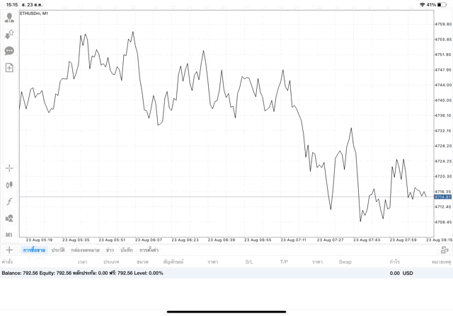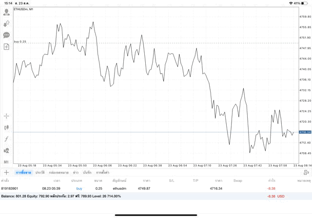 การเทรด Crypto ETHUSD บนแอพเล่นหุ้น MT4 เริ่มแล้ว ติดลบก่อน เมื่อเวลาผ่านไป ราคาเปลี่ยนแปลง ผลการลงทุนอาจติดลบหรือได้บวกกำไร