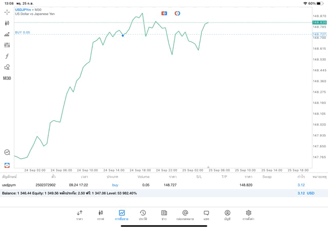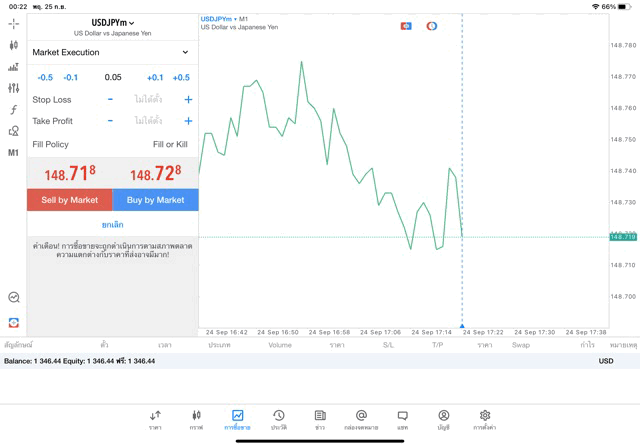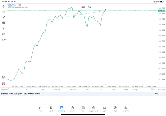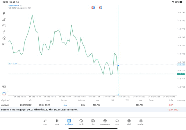 การเทรด forex USDJPY บนแอพเล่นหุ้น MT5 เริ่มแล้ว ติดลบก่อน เมื่อเวลาผ่านไป ราคาเปลี่ยนแปลง ผลการลงทุนอาจติดลบหรือได้บวกกำไร