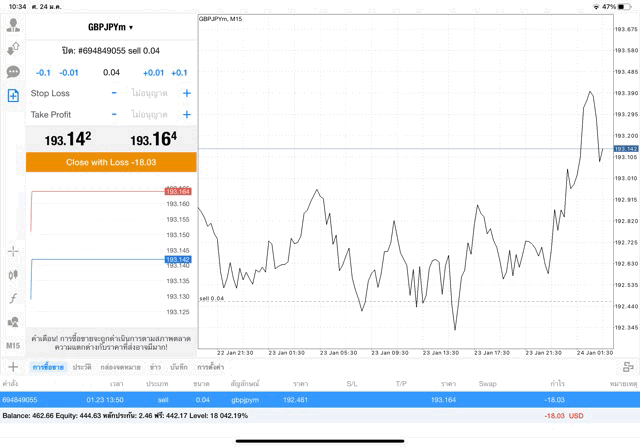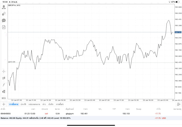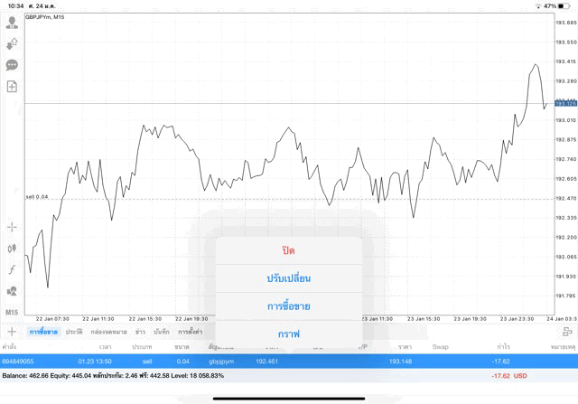 การเทรด forex GBPJPY บนแอพเล่นหุ้น mt4 เริ่มแล้ว ติดลบก่อน เมื่อเวลาผ่านไป ราคาเปลี่ยนแปลง ผลการลงทุนอาจติดลบหรือได้บวกกำไร