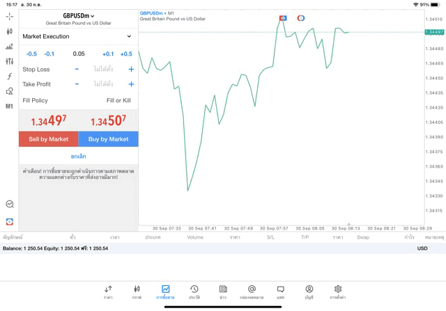 การเทรด forex GBPUSD 0.05 lot บนแอพเล่นหุ้น MT5 หรือ Meta Trader 5