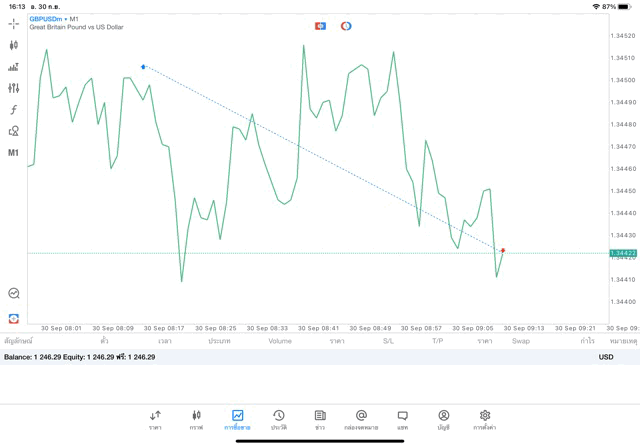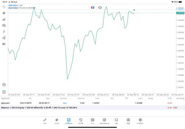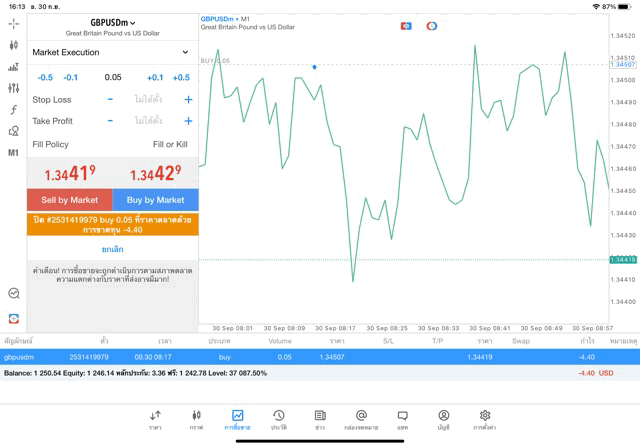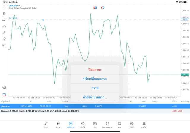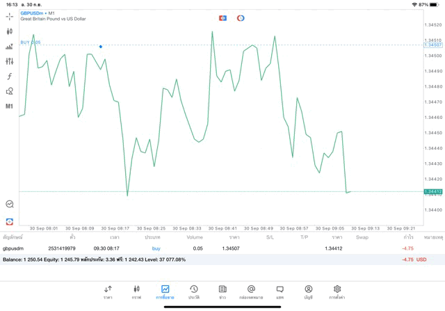 การเทรด forex GBPUSD บนแอพเล่นหุ้น mt5 เริ่มแล้ว ติดลบก่อน เมื่อเวลาผ่านไป ราคาเปลี่ยนแปลง ผลการลงทุนอาจติดลบหรือได้บวกกำไร