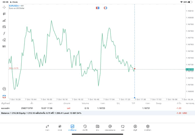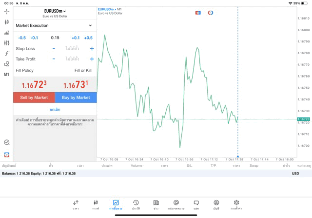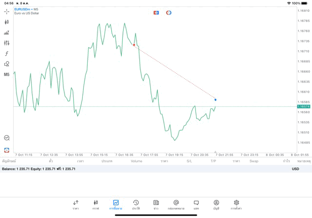 การเทรด forex EURUSD บนแอพเล่นหุ้น MT5 เริ่มแล้ว ติดลบก่อน เมื่อเวลาผ่านไป ราคาเปลี่ยนแปลง ผลการลงทุนอาจติดลบหรือได้บวกกำไร