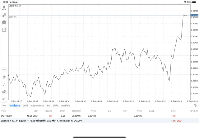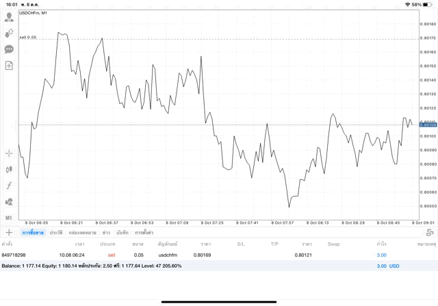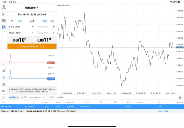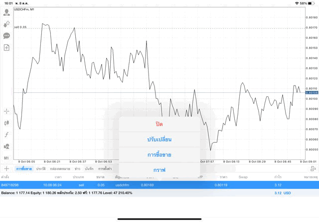 การเทรด forex USDCHF 0.05 lot แอพเล่นหุ้น MT4 หรือ Meta Trader 4