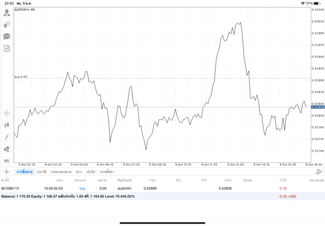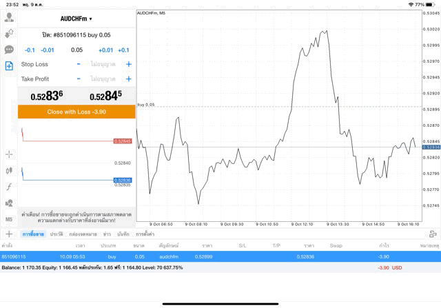 การเทรด forex AUDCHF บนแอพเล่นหุ้น mt4 เริ่มแล้ว ติดลบก่อน เมื่อเวลาผ่านไป ราคาเปลี่ยนแปลง ผลการลงทุนอาจติดลบหรือได้บวกกำไร