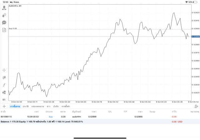 การเทรด forex AUDCHF 0.05 lot บนแอพเล่นหุ้น MT4 หรือ Meta Trader 4