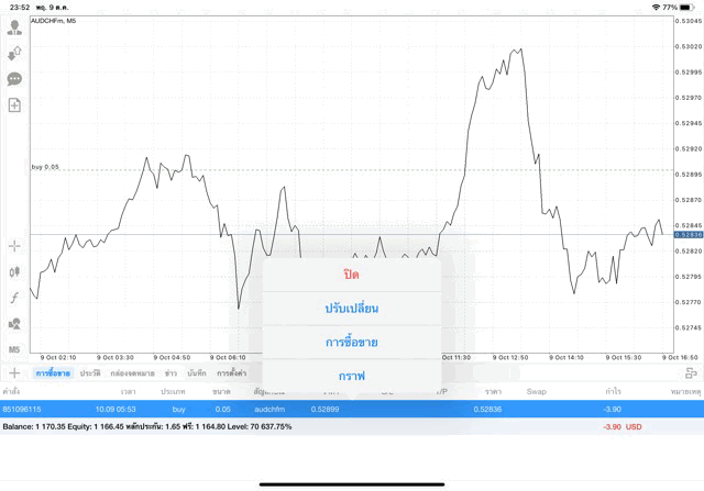 -3.78 $ เปิดการเทรดไว้ต่อ หรือ ปิดการเทรดครั้งนี้เลย ได้เงินกำไรเข้าบัญชีเทรด ถ้ายังไม่ปิด ราคาเปลี่ยนแปลง ผลการลงทุนยังเปลี่ยนแปลง เช่น กำไรลดลง หรือ อาจเพิ่มขึ้น หรือ กลับไปติดลบ