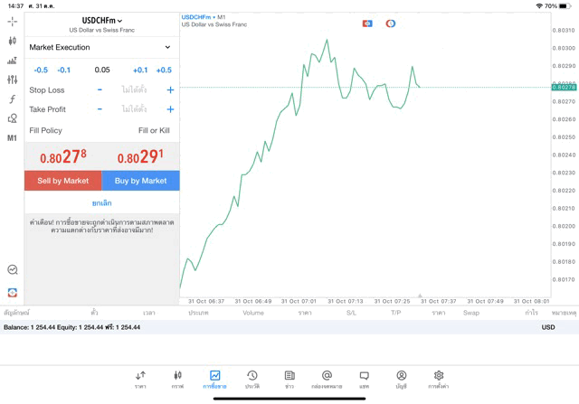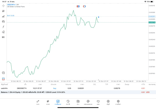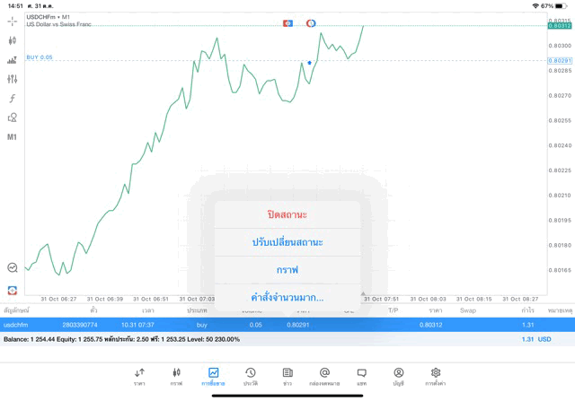 การเทรด forex USDCHF 0.05 lot แอพเล่นหุ้น MT5 หรือ Meta Trader 5