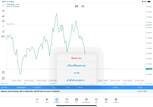 -37.95$ เปิดการเทรดไว้ต่อ หรือ ปิดการเทรดครั้งนี้เลย ได้เงินกำไรเข้าบัญชีเทรด ถ้ายังไม่ปิด ราคาเปลี่ยนแปลง ผลการลงทุนยังเปลี่ยนแปลง เช่น กำไรลดลง หรือ อาจเพิ่มขึ้น หรือ กลับไปติดลบ