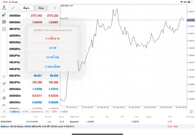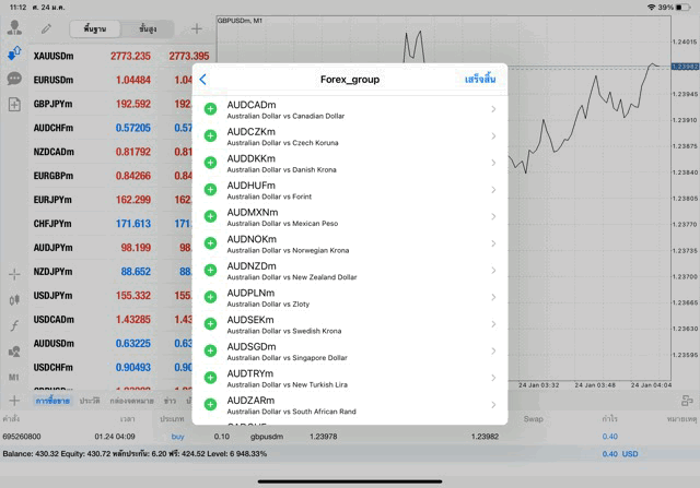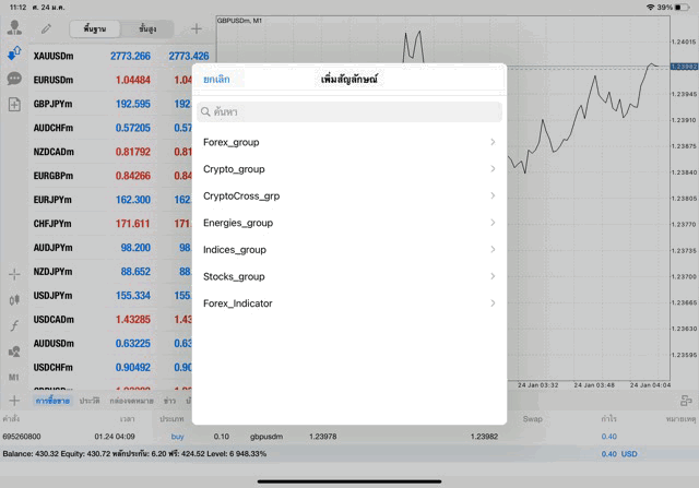 วิธีเพิ่มชื่อหุ้น,เปิดกราฟ,เริ่มเทรด,บนแอพเล่นหุ้น mt4