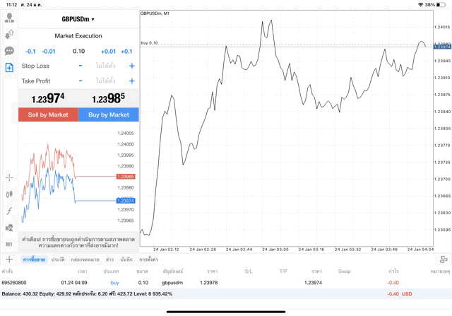 4.คลิ๊กปุ่ม +บนแผงเมนูด้านข้าง เปิดหน้าต่างส่งคำสั่งซื้อขาย เริ่มซื้อขายได้ทันที