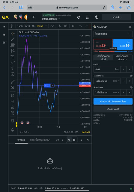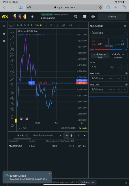 เริ่มต้นส่งคำสั่งซื้อขาย ทองคำ บน exness terminal