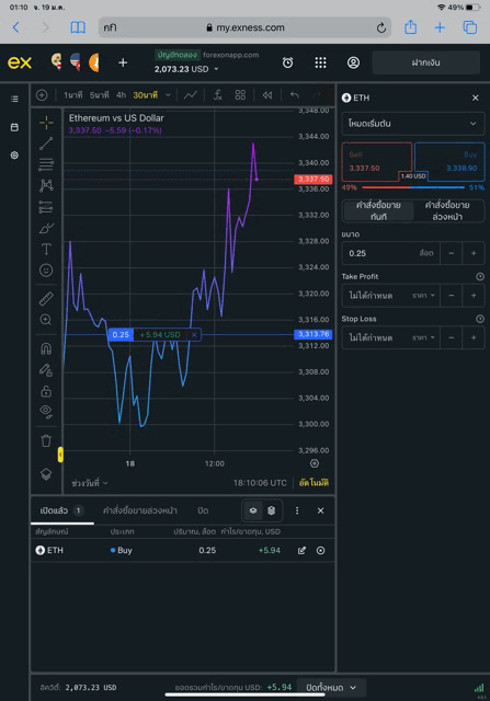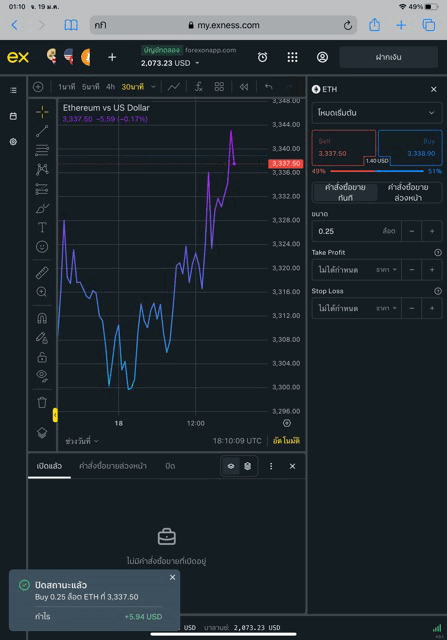 เริ่มต้นส่งคำสั่งซื้อขาย ETHUSD บน exness terminal
