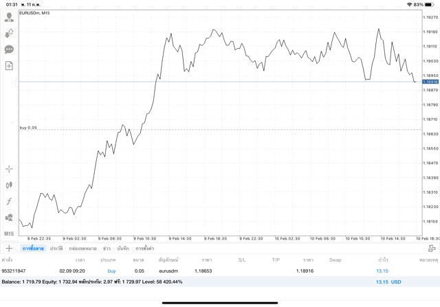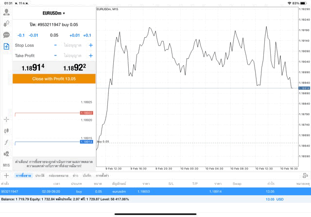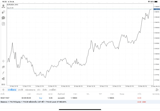 การเทรด forex EURUSD บนแอพเล่นหุ้น MT4 เริ่มแล้ว ติดลบก่อน เมื่อเวลาผ่านไป ราคาเปลี่ยนแปลง ผลการลงทุนอาจติดลบหรือได้บวกกำไร