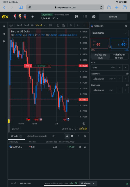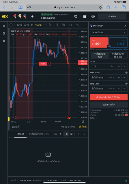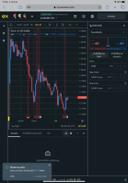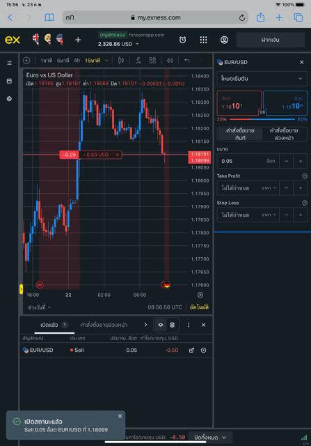 เล่น Forex EURUSD กับ exness บน exness terminal