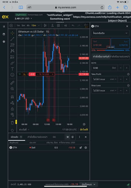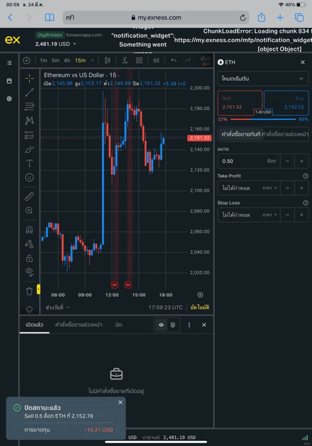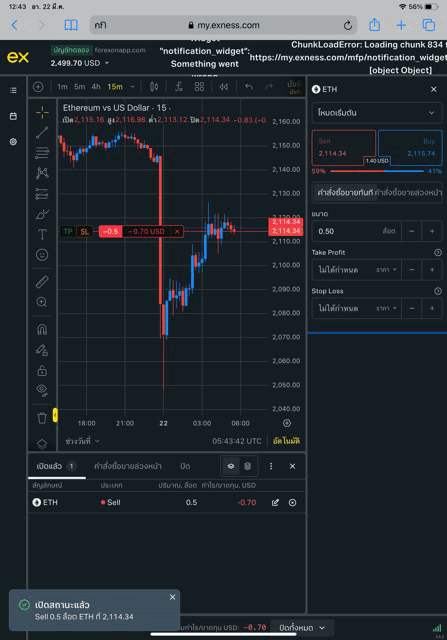 เริ่มต้นส่งคำสั่งซื้อขาย ETHUSD บน exness terminal
