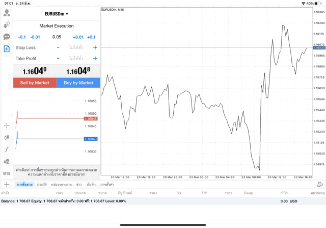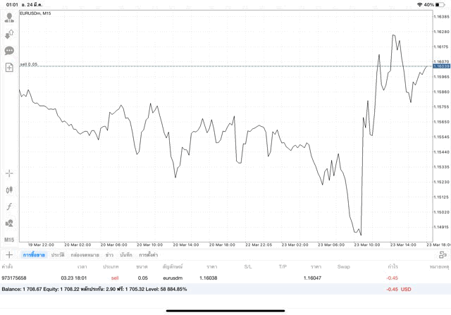การเทรด forex EURUSD บนแอพเล่นหุ้น MT4 เริ่มแล้ว ติดลบก่อน เมื่อเวลาผ่านไป ราคาเปลี่ยนแปลง ผลการลงทุนอาจติดลบหรือได้บวกกำไร