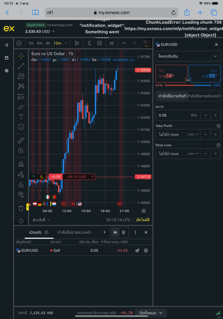 เล่น Forex EURUSD กับ exness บน exness terminal