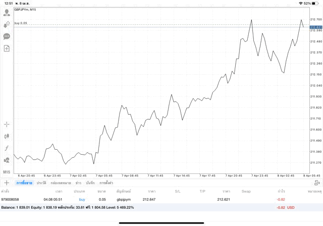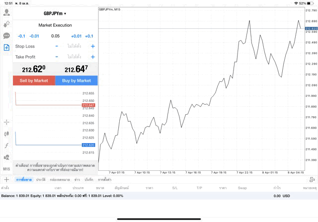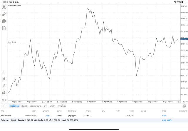 การเทรด forex GBPJPY บนแอพเล่นหุ้น MT4 เริ่มแล้ว ติดลบก่อน เมื่อเวลาผ่านไป ราคาเปลี่ยนแปลง ผลการลงทุนอาจติดลบหรือได้บวกกำไร