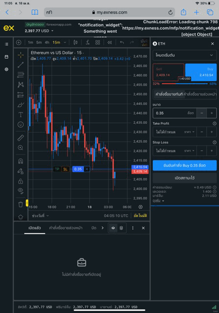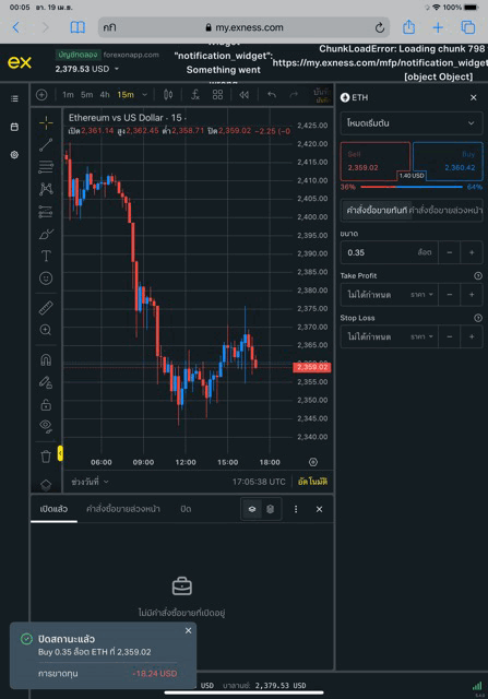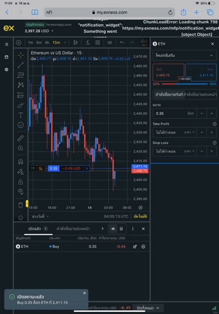 เริ่มต้นส่งคำสั่งซื้อขาย ETHUSD บน exness terminal