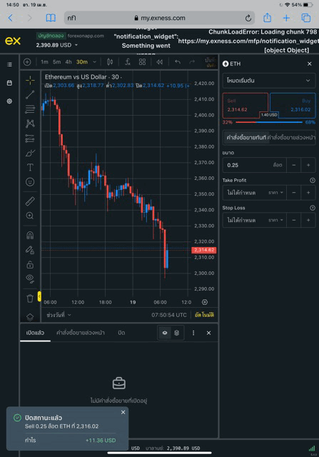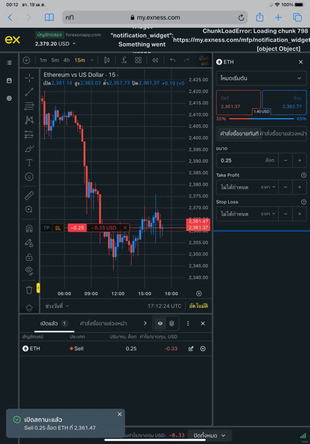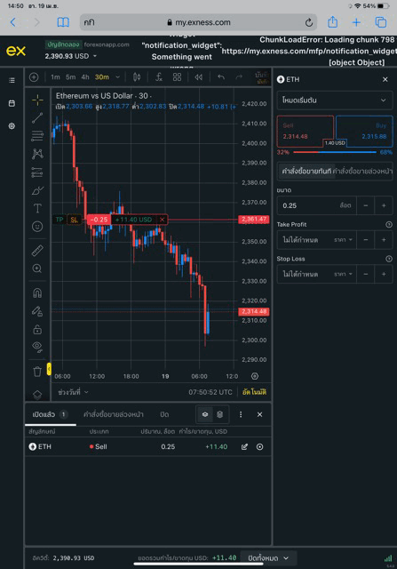 เริ่มต้นส่งคำสั่งซื้อขาย ETHUSD บน exness terminal