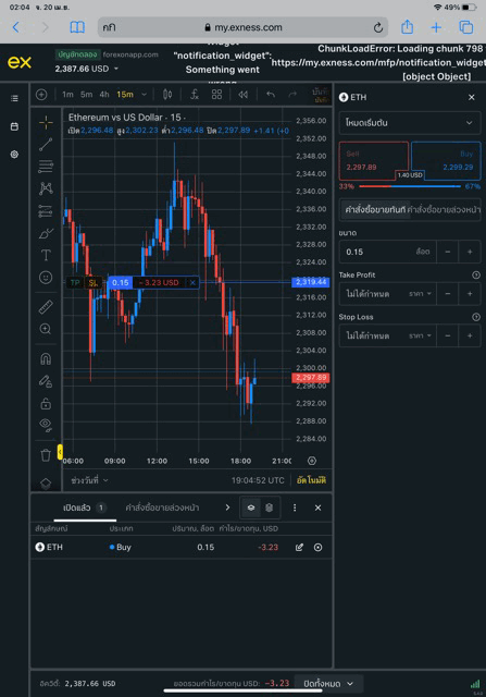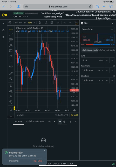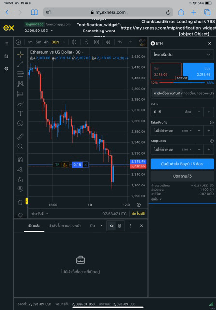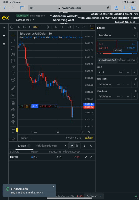 เริ่มต้นส่งคำสั่งซื้อขาย ETHUSD บน exness terminal