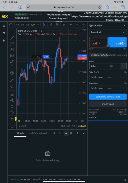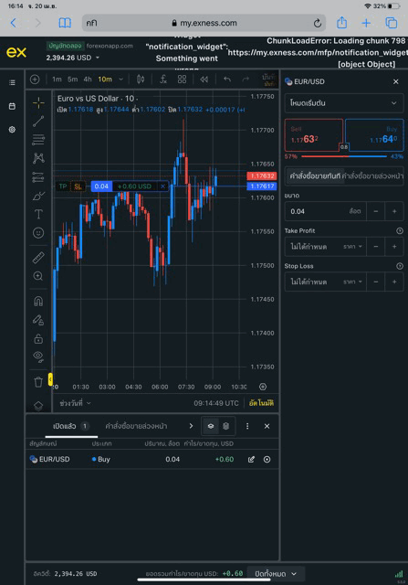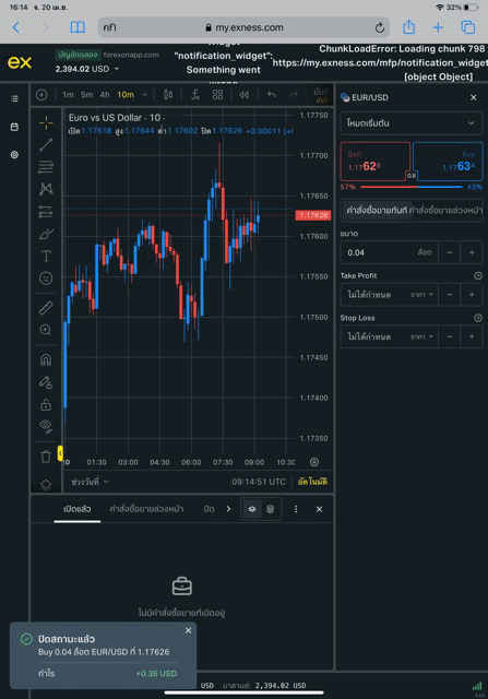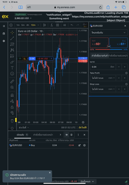 เล่น Forex EURUSD กับ exness บน exness terminal