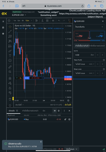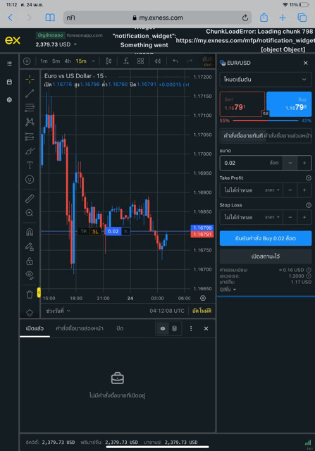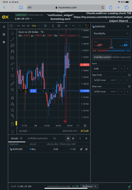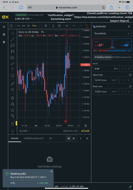 เล่น Forex EURUSD กับ exness บน exness terminal