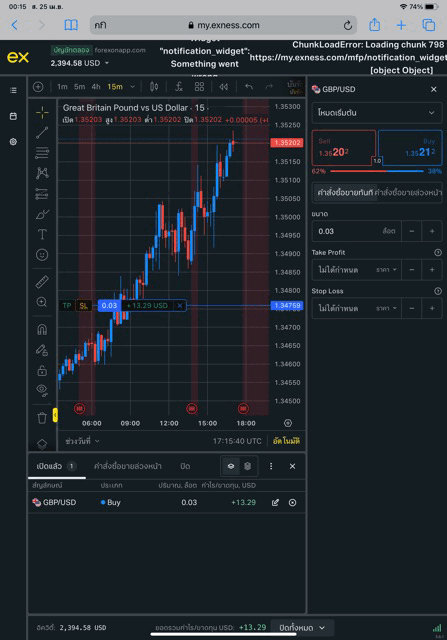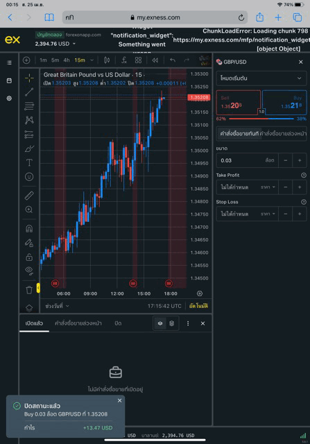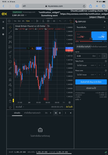 อาจได้กำไร หรือ ขาดทุน การเก็งกำไร Forex ทดลองเก็งกำไร Forex GBPUSD ผ่านอินเตอร์เน็ต กับ exness ซื้อขายได้ตลอดวันตลอดคืน