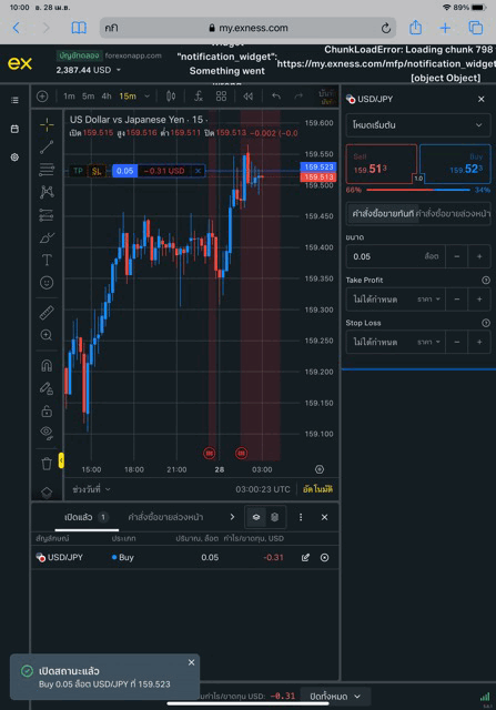 เล่น Forex USDJPY กับ exness บน exness terminal