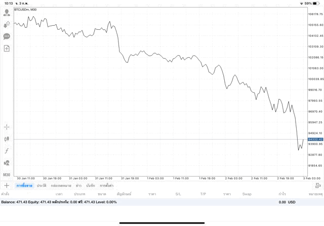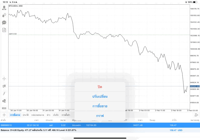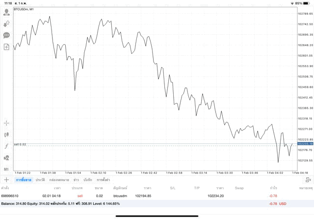การเทรด Crypto BTCUSD บนแอพเล่นหุ้น mt4 เริ่มแล้ว ติดลบก่อน เมื่อเวลาผ่านไป ราคาเปลี่ยนแปลง ผลการลงทุนอาจติดลบหรือได้บวกกำไร