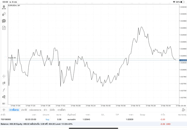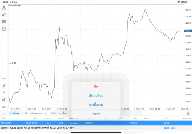 การเทรด forex EURUSD บนแอพเล่นหุ้น mt4 เริ่มแล้ว ติดลบก่อน เมื่อเวลาผ่านไป ราคาเปลี่ยนแปลง ผลการลงทุนอาจติดลบหรือได้บวกกำไร
