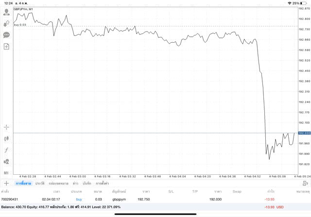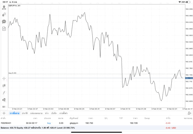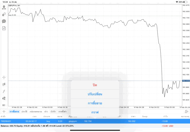 การเทรด forex GBPJPY บนแอพเล่นหุ้น mt4 เริ่มแล้ว ติดลบก่อน เมื่อเวลาผ่านไป ราคาเปลี่ยนแปลง ผลการลงทุนอาจติดลบหรือได้บวกกำไร