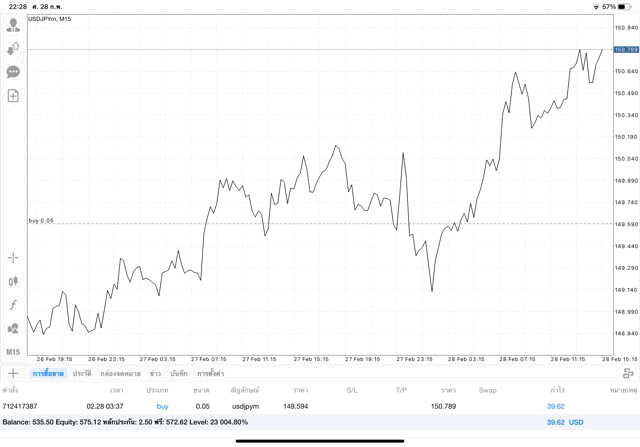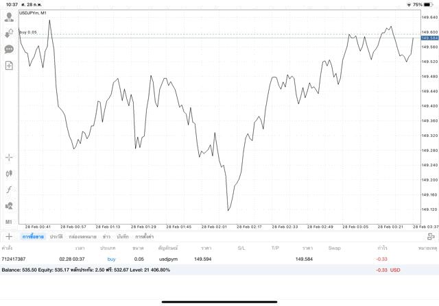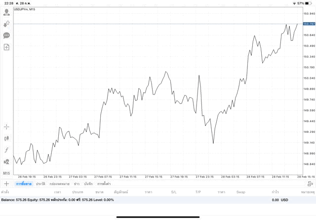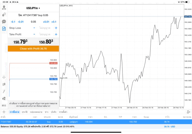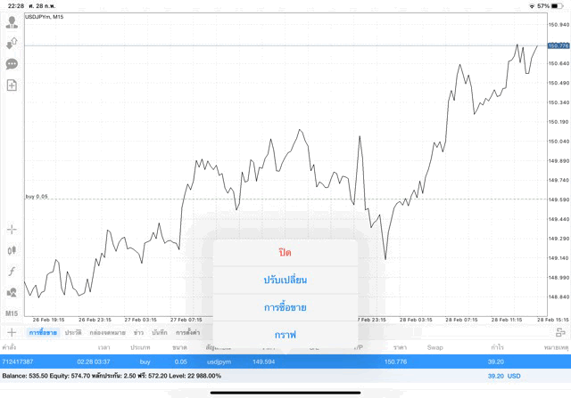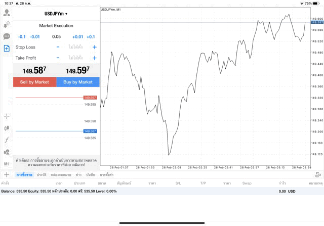 การเทรด forex USDJPY 0.05 lot แอพเล่นหุ้น MT4 หรือ Meta trader 4