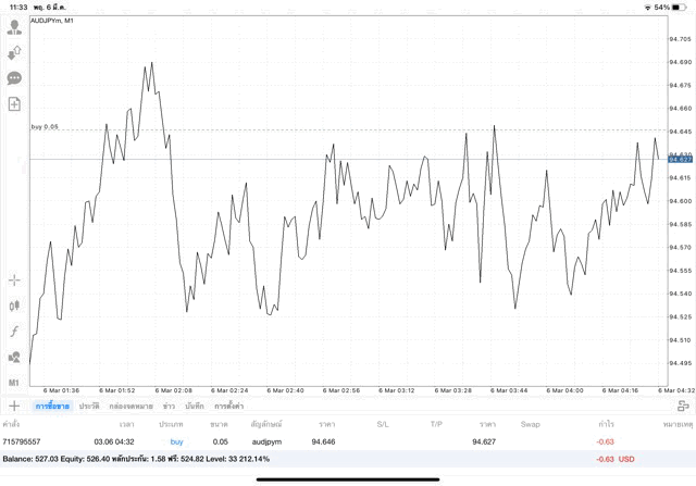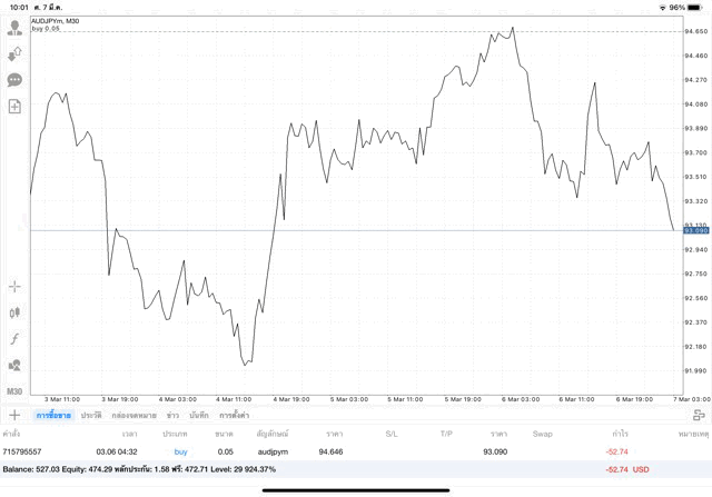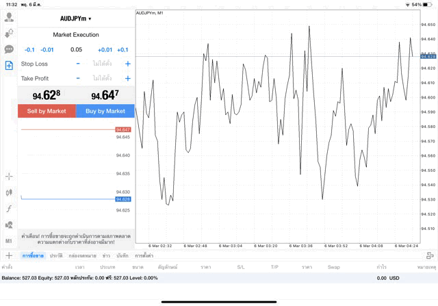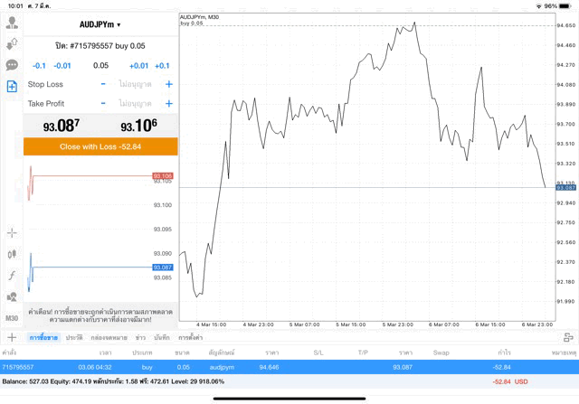 การเทรด forex AUDJPY 0.05 lot แอพเล่นหุ้น MT4 หรือ Meta Trader 4