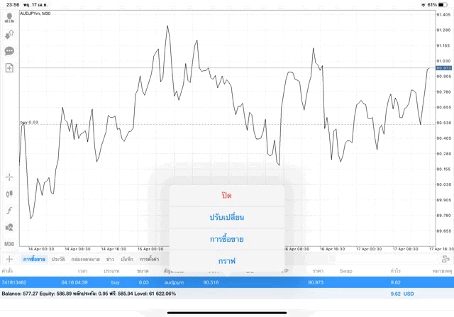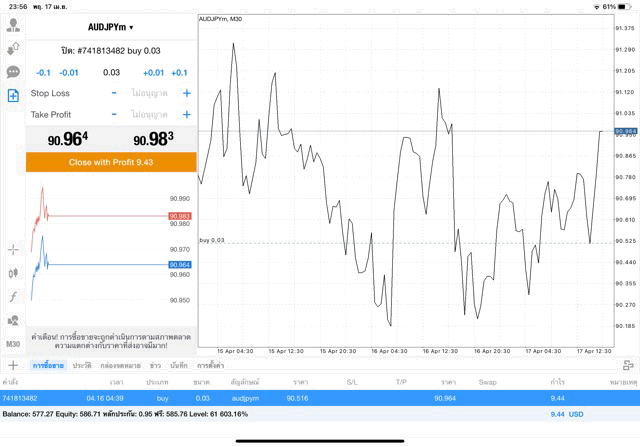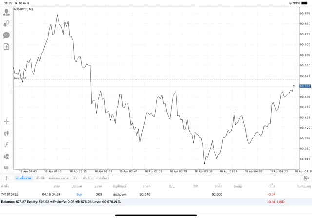 การเทรด forex AUDJPY 0.03 lot แอพเล่นหุ้น MT4 หรือ Meta Trader 4