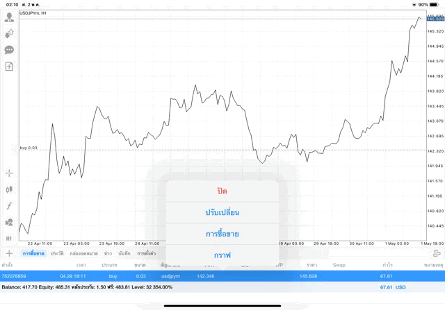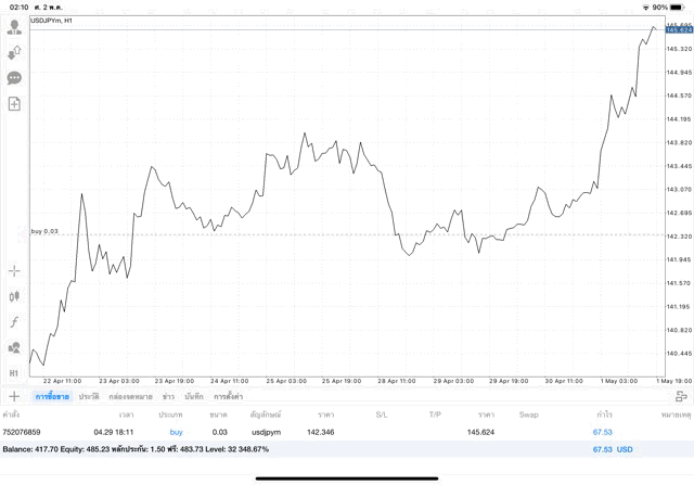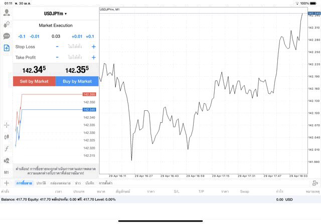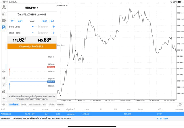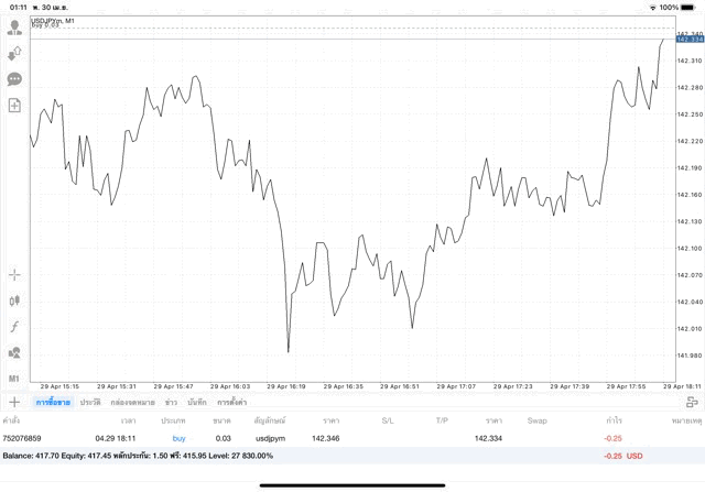 การเทรด forex USDJPY 0.03 lot แอพเล่นหุ้น MT4 หรือ Meta Trader 4